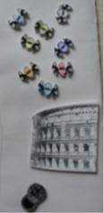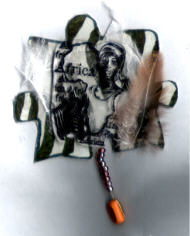 angerauht von hinten. Man stempelt das Motiv mit einem wasserfesten Stempelkissen auf die rauhe Seite der Folie und malt sie mit Buntstiften oder Filzstiften an. Dann schneidet man das Motiv so aus wie