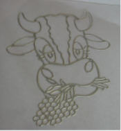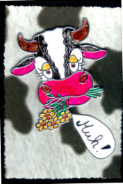 2. Der Kuhsticker ist auf Windradfolie geklebt, mit den Sheet Markers alles außer die weißen Stellen anmalen. Eine weiße Karteikarte dahinter kleben und Konturen ausschneiden. Eine kleine