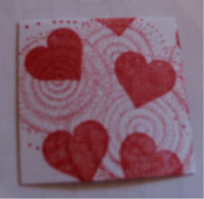 Dann habe ich die Herzen auf den Streifen gestempelt und darüber noch den Musterstempel. |
