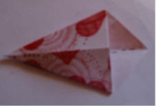 Anschließend die beiden Seiten zur Mittellinie falten und fertig ist die Drachenform. |