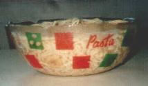 Bei der Pastaschüssel habe ich mit Servietten und Wico gearbeitet. Wico kristallklar wird auf eine Folie gestrichen, darauf kommt das Serviettenmotiv und dann nochmals kristallklar darüber.