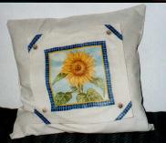 genäht und viele kleine Vierecke die ich Jahreszeitlich verziert habe und somit immer wieder wechseln kann.