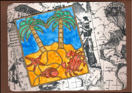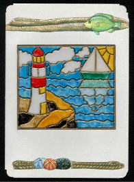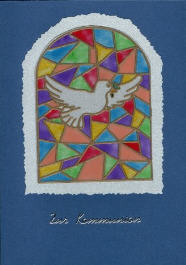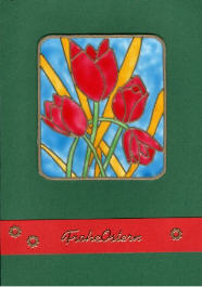 Bei diesen Karten hat meine Schwester die Sticker auf Wicofolie geklebt und dann die Felder mit Window Colour ausgemalt.