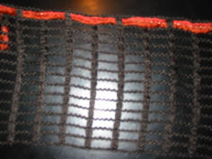 Ganz neu hab ich mir dieses Gitter für so einen gewebten Gitterschal von einer Messe mitgebracht. Diese Gitter kann man in verschiedenen breiten kaufen. Die Wolle wird einfach dazwischen