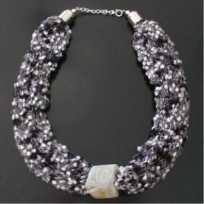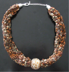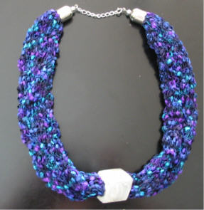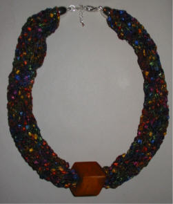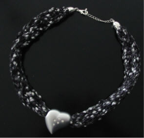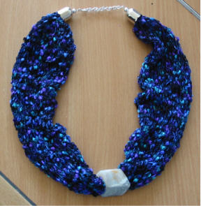 befestige den Verschluß mit Heißkleber. Bei der Kette Nr. 2 habe ich den Strang nicht zusammen genäht, einfach so gelassen, das ist halt Geschmackssache.