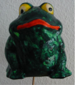 Es gibt viele verschiedene Tierfiguren aus Styropor die lassen sich wunderbar mit Wico bemalen. Von unten eine Stab reinstecken und schon kann der Frosch überall im Garten stehen.