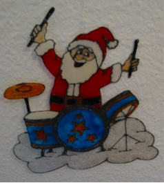 Den Schlagzeuger hat mein Sohn für seinen Schlagzeuglehrer gemalt aus dem Buch “ Window Color Weihnachtsfenster”.