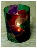 Glas habe ich das Muster mit goldener Kontur gemalt. Die Flächen dann nach dem Trocknen in weihnachtlichen Farben angemalt.