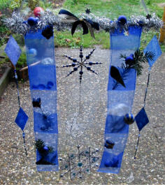 Fensterdeko mit Organzataschenband, Perlen in silber, blau usw. |