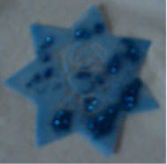 Rückseite haben wir sie mit Kleber eingestrichen und blaues Eiskristall darüber gestreut.