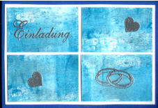 Hier habe ich die gleiche Karte dreimal anders gearbeitet. Das Motiv ist jedes Mal mit silbernem Embossingpulver eingebrannt worden. Bei der ersten Karte habe ich die Ecken mit einem blauen