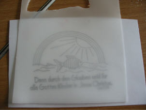 Das Motiv dann vorsichtig abheben und auf ein anders farbiges Stück Wachs drücken.