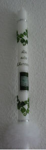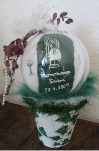 Kommunionsticker aufgeklebt. Für den Tag am besten mit frischen weißen Blumen dekorieren.