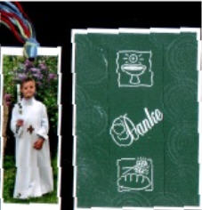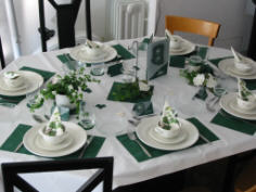 Frederic hat nun 2004 Kommunion und das Thema ist Arche Noah. Da mir die das Thema nicht so liegt, habe ich beschlossen die Deko diesmal ganz traditionell in grün/weiß zu halten. Einige