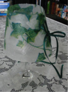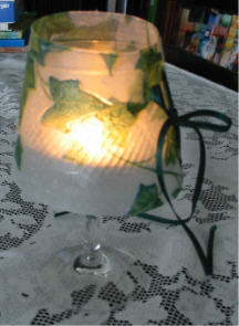 Eine Lichterkette mit Efeuserviette als Deko, mit ein bißchen Kristalleis und Dekofolie verziert.