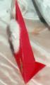 roten Quadrat gefaltet. Den Kopf und die Mütze machen die Kinder aus Papier wie sie wollen.