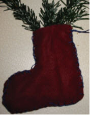 Diesen Stiefel aus Filz haben die Kinder in der Schule genäht.