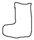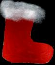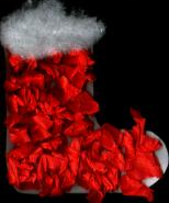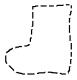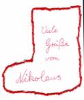 Schneidet so einen Stiefel aus dicker Pappe aus und laßt ihn von den Kindern mit roter Fingerfarbe anmalen. Oben klebt ihr ein bißchen Watte hin. Wenn ihr die Kinder 3 oder 4 Stiefel, von beiden Seiten anmalen laßt, könnt ihr sie