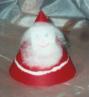 müßt ihr die Nahtstellen gut verstreichen, sonst fällt der Kopf vom Körper. Für den Bart könnt ihr richtige Watte daran kleben oder später wenn der Ton trocken ist mit Plusterpen befestigen.