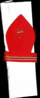 Diese doppelseitige Bischofsmütze, als Serviettenhalter, könnt ihr aus Pappe, Wico oder Moosgummie basteln.