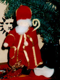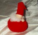 Filzkreis wird der Körper des Nikolaus. Füllt ihn gut mit Watte und näht ihn oben zu. Dann steckt ihr eine Perle auf einen Pfeifenputzer und steckt den auf den Bauch. die