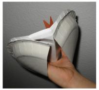 Erstmal braucht ihr einen ganzen Teller den ihr so in der Mitte nach Vorne knickt. |