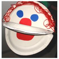 Dann könnt ihr noch diese Handpuppen basteln: Ihr schneidet von zwei ganzen Tellern jeweils das gleiche Stück unten ab und tackert sie dann zusammen. |