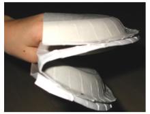 Zwei der halben Teller tackert oder klebt ihr an dem ganzen fest. |