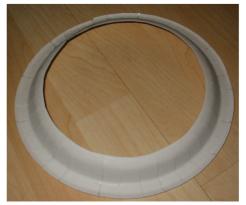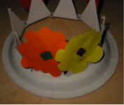 Hier haben wir auf den Papptellerring Blumen aus Faltpapier aufgeklebt. |
