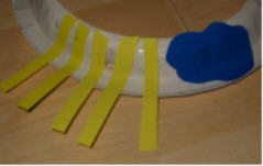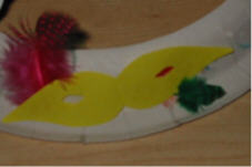 Eine andere Art von Hut oder Kopfbedeckung könnt ihr aus dem äußeren Kreis eines Papptellers basteln. Die passen von der Größe in der Regel gut auf die Kinderköpfe. |