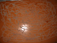 Kinder nun den Sand streuen. Laßt es ein bißchen antrocknen und dann den restlichen Sand von den Bildern schütteln. |