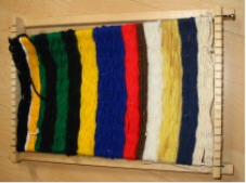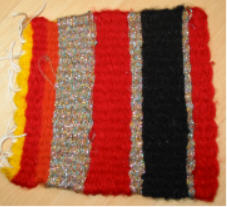 Webrahmen mit Wolle habe ich den Kindern im Kindergarten entweder eine Tasche, ein Kopfkissen oder ein Deckchen gemacht. Mein Sohn hat in der Schule mit Papier gewebt und daraus ein Lesezeichen gemacht. |