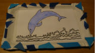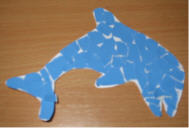 Das können auch schon die ganz kleinen. Laßt sie einfach nur Stücke aus verschiedenen Papieren, Zeitungen, Katalogen ausreißen und mit Kleister aufkleben. Die größeren können dann mit eurer Hilfe auch ein bestimmtes Motiv das sie sich erst mit Bleistift aufmalen mit Papierschnipseln bekleben. Ihr könnt ihnen auch ein Motiv ausschneiden wie hier den Stern oder den Delfin und dann von ihnen Bekleben lassen. Super eignet sich diese Technik um Bilderrahmen herzustellen. |