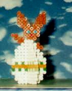 Steckt man die Ritze ineinander kann der Hase auf dem Tisch stehen.