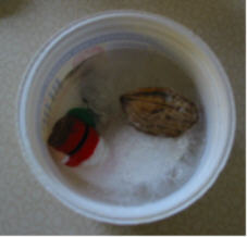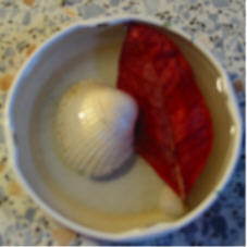 Füllt einfach leere Joghurtbecher oder Deckel von Gläsern mit Wasser. Legt Muscheln, Blätter, Nusschalen usw. hineine und stellt sie wenn es friert nach