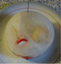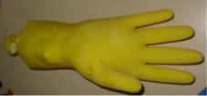 Füllt einen Gummihandschuh mit Wasser, bindet ihn oben gut zu und legt ihn ins Eisfach. Ist er gefroren könnt ihr den Handschuh vorsichtig abmachen und fertige