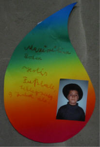 5.Und alle Farben zusammen zeigen, daß Gott uns so liebt. Er hat uns alle geschaffen, ist bei uns, was auch immer geschieht. Gott will, daß alle gemeinsam leben nach seinem Plan, daß er durch