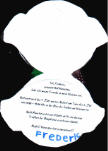 Der Text könnte ungefähr so lauten: Ich, Frederic, genannt Old Winnetou, lade alle meine Freunde in mein Wigwam ein.