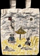 Diese beiden Teile sind mit Stoffstempelkissen gestempelt und mit Stoffmalfarben ausgemalt.