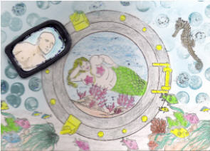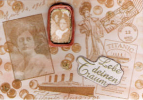 Hier wurden die Verschlüsse von Tetrapack als Rahmen auf die Karten aufgeklebt und in die Mitte ein Bild gestempelt.