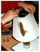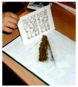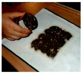 3.Das restliche Pulver schütten wir auf ein darunter liegendes Blatt ab..... |