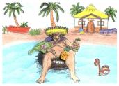 Dies ist ein Beispiel wie man Formen oder Streifen durch Abdecken und Tupfen hinbekommt |