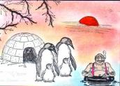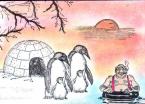 4.Nun könnt Ihr rund um das Motiv andere Motive stempeln. So könntet Ihr nun eine ganze Pinguinkolonie auf das Bild stempeln. |