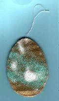 Für diese beiden Eier habe ich aus einem Pappkarton die Eier ausgeschnitten und Beide komplett in Gold embosst. Bei dem linken habe ich noch andere Embossingpulver darauf gemacht.