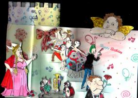 Dies ist eine sogenannte Treppenkarte, der Clou an der Karte ist, das man sie ganz flach zusammen falten und in einen Umschlag stecken kann. Diese könnt Ihr auch bei Freddy & Friends bestellen.