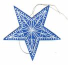 Der Stern ist mit einem Embossing Stempelkissen auf blauem Papier gestempelt. Darauf kommt silbernes Embossingpulver das erhitzt. Wir haben den Stern zweimal