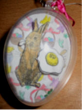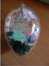 Hier habe ich eine teilbare Plastikkugel bestempelt. Für die Mitte wird eine runde Scheibe in Größe des Kugeldurchmessers ausgeschnitten und diese dann mit Hintergrundmotiven bestempelt. Die anderen