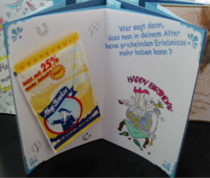 Wir haben das gesammelte Geld auf jeder Seite befestigt bzw. in die kleinen Umschläge gesteckt.
