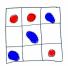 Erst legt ihr nacheinander die Steine auf die Felder, dann zieht ihr sie in alle Richtungen nur nicht schräg. Wer hat zuerst eine Dreierreihe (diagonal, senkrecht, waagerecht). |